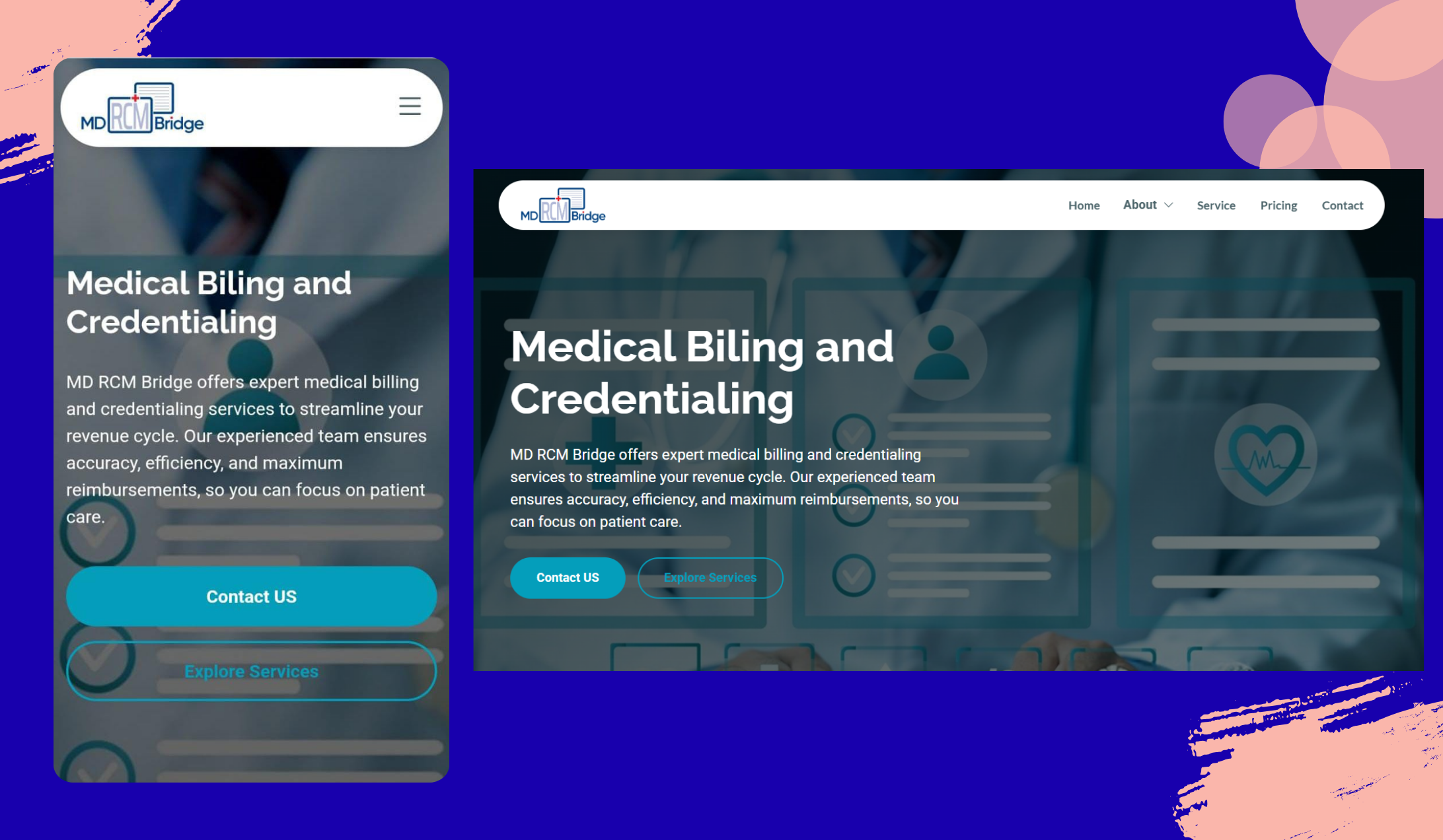 To meet these requirements, a clean, organized, and professional website was implemented that showcases the medical billing and RCM services offered by the company. The solution includes: